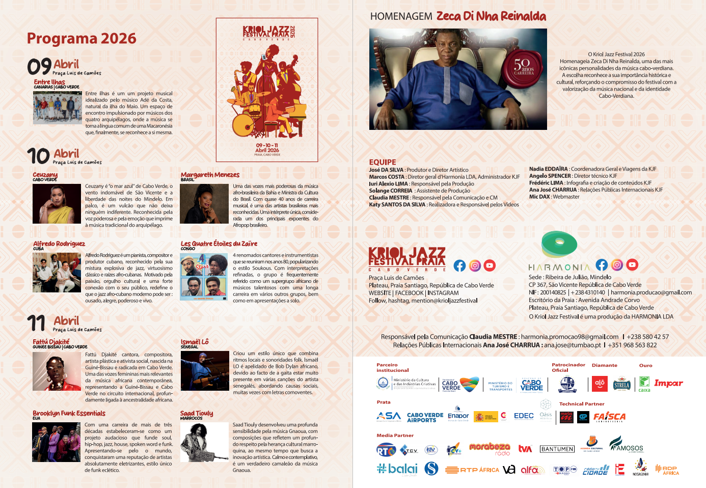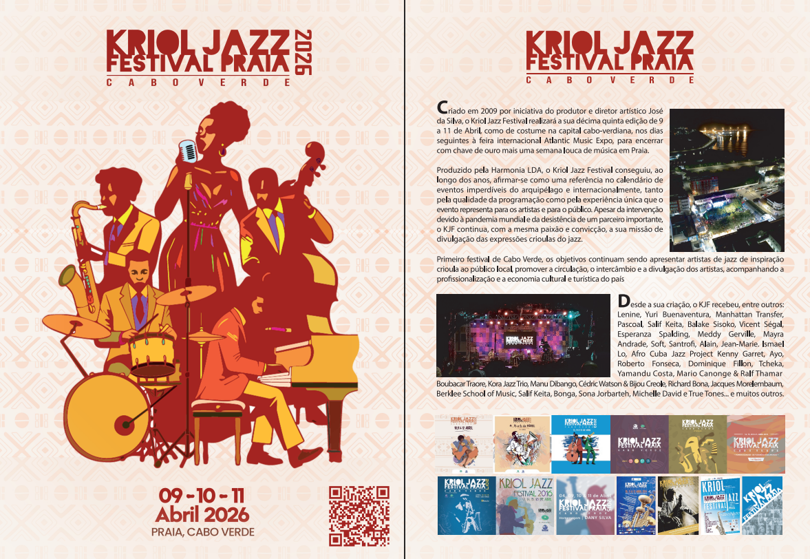 Temos o prazer de apoiar a 15ª edição do Kriol Jazz Festival, que decorrerá nos dias 9, 10 e 11 de abril de 2026.