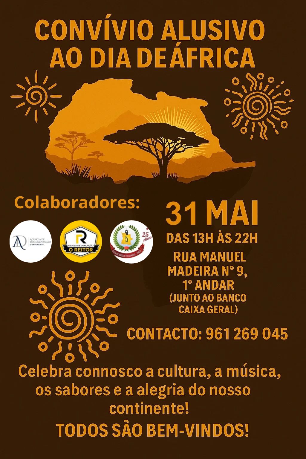 Este evento multicultural tem como objectivo celebrar a riqueza e a diversidade das culturas africanas, promovendo o encontro, a partilha e o convívio entre comunidades. O programa inclui uma mostra de gastronomia típica, actuações de grupos musicais, danças tradicionais e workohop Semba, representando a vibrante herança dos povos africanos.