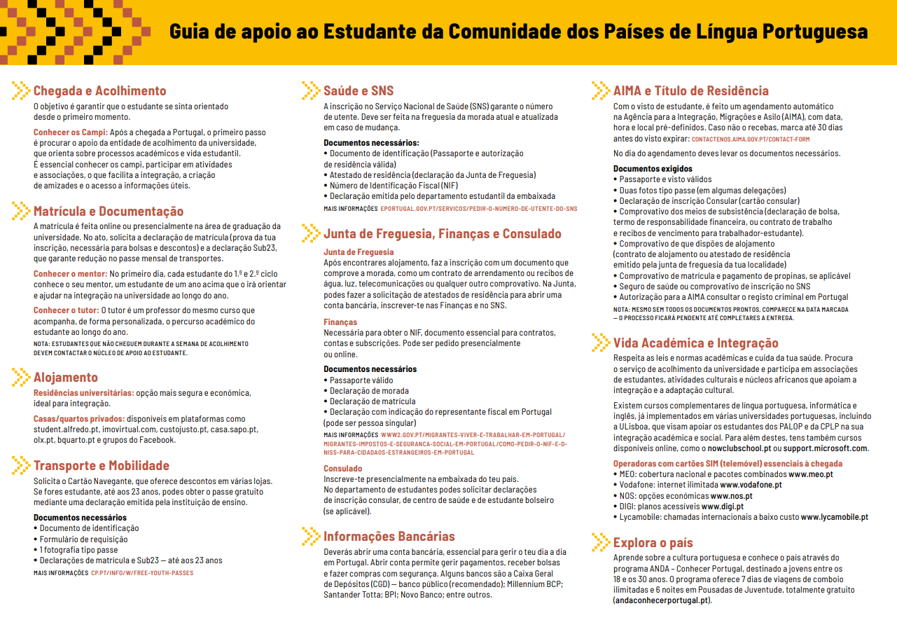 Já está disponível o Guia de Apoio ao Estudante da CPLP, uma ferramenta essencial para estudantes da Comunidade dos Países de Língua Portuguesa que pretendem estudar ou já se encontram em Portugal.