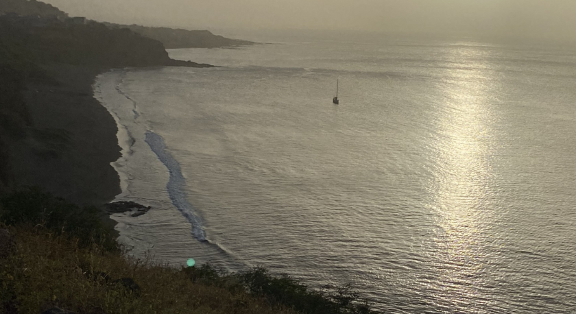 Da ilha de Santiago à de Maio, oitava etapa desta Volta a Cabo Verde, são 40 milhas náuticas, ou seja, 74 quilómetros. A viagem foi feita sempre de noite: sete horas de navegação. Navegação desagradável, há que o reconhecer, porque este escriba não é dos que acham que o mar é uma espécie de Paraíso ou Olimpo, onde é tudo harmonia e felicidade, paz e amor. É certo que da marinhagem do “Cachaça” jamais se ouviram queixumes contra a maior ou menor intensidade do vento, ou contra o estado do mar, das suas correntes ou ondulação. Aliás, nessas matérias, tudo tem corrido dentro do previsto. O problema é mesmo o navegar de frente, peito aberta, direitinho contra a vaga. Vá lá que, nesta etapa entre as duas ilhas, que, pela sua proximidade, se vêem uma à outra, ainda se beneficiou de alguma proteção conferida por ambas, que se traduz por uma diminuição quer da força do vento quer do tamanho da vaga. Já na próxima etapa, a caminho da Boa Vista, não se poderá contar com esse fator. Adivinha-se o pior – mas o melhor é não antecipar, um dia de cada vez, como soi dizer-se.