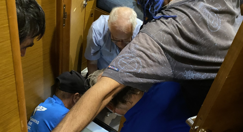 Uma hora depois, e estando ainda a contar carneiros, tendo ouvido um estranho sussurro vindo do cockpit, subiu até lá. O estado-maior do veleiro estava reunido e com cara de caso. Pudera: um dos dois motores do catamaran, o que se situa no casco de bombordo, estava a falhar. Temeu-se que fosse falta de óleo, mas verificado o seu nível, não era essa a causa. Desligou-se o motor e tornou-se a ligar, uma espécie de reset como é de uso fazer aos telemóveis, tablets e computadores quando se ignora do que padecem. Por momentos pareceu que o motor retomara a normalidade, mas cedo voltou a fraquejar, como que a engasgar-se. Até que aconteceu o que mais se temia: deixou mesmo de funcionar. Nem com mais resets, nem à paulada, nem com insultos. O cronista, que, enquanto repórter, escreveu muitas notas necrológicas, apressou-se a anotar a data do óbito do motor no seu caderno de bolso de capa preta: 07.50 horas de 12 de dezembro de 2024. Não se podendo navegar à vela de forma útil por razões já aqui aduzidas, passou a andar-se com um só motor. Necessariamente mais devagar. Chegados à Boavista, acredita-se, haverá certamente um mecânico capaz de o reparar – façamos figas para que tal aconteça e que o motor de estibordo, informado do sucedido com o irmão gémeo de bombordo, não faça nenhuma birra ou não declare nenhuma greve de solidariedade.