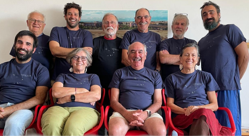 O repasto terminou em êxtase. Não propriamente culinário, e não se veja nisto qualquer remoque do escriba ao seu irmão e “chef” Nuno, mas de carácter mais memorialístico, quase se diria afetivo. O João Blasques, o skipper adjunto, que liderara as anteriores aventuras nos Açores e na Madeira, retirou de um misterioso saco de plástico azul, que trouxera de Lisboa, uma prenda para todos e cada um: uma t-shirt antecipadamente comemorativa do êxito da viagem. Confecionadas em Loures, traziam, estampadas, o mapa das ilhas de Cabo Verde, com a particularidade de ter sido expurgada a única a que não se aportou, Santa Luzia, por não ser habitada. E com os dizeres “Alboran Prosecco. Cabo Verde 2024”. É conhecida a imaginação e o espírito inventivo do mais velho de todos nós, mas convenhamos que lhe seria de todo impossível prever que o veleiro “Prosseco“, alugado há muitos meses à charter Alboran, seria substituído em cima da hora, antes da primeira etapa se iniciar, pelo catamaran “Cachaça”. Eram onze camisetas, dez azuis e uma preta, de dimensões várias: M, L e uma XL. A preta, que era a XL, foi por unanimidade e conveniência entregue ao skipper. Seguiu-se a indispensável foto de família dos sete tripulantes e dos três acompanhantes, envergando as t-shirts, que todos guardarão como lembrança muito especial deste passeio pelas ilhas de Cabo Verde (VER FOTOGRAFIA).