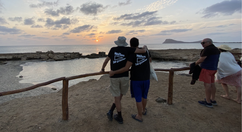 Claudino, o motorista, vive em Alcatraz e serviu-nos de guia improvisado. Pertence a uma família de músicos que animam uma tocatina de cinco instrumentos. Ele próprio toca cavaquinho, que aprendeu com o pai. É uma das três bandas da ilha, com atuações regulares em festas, e até já foram tocar a Santiago, da única vez que saiu da ilha. A irmã, Delfina, por sua vez, é a líder de um grupo de batucadeiras, chamado Raiz Monte Penoso. As batucadeiras são um agrupamento típico de Santiago: vozes exclusivamente femininas, de idades muito variadas, que se acompanham a si próprias batendo ritmadas com ambas as mãos num invólucro que seguram no regaço, podendo ser acompanhadas por teclado ou concertina. Além de ser a vocalista, Delfina é a compositora. Na aparelhagem sonora da Hiace, Claudino selecionou uma das músicas do grupo, “Povo cabo-verdiano” (https://youtube.com/watch?v=z83hSLSBo8Y&si=ie4Or7KbWbVKdvGV). Os marinheiros escutaram e aprovaram. A música é deveras simples e ritmada, entra logo no ouvido, e não admira que toda a tripulação a cantarolasse e assobiasse, enquanto batia palmas como as batucadeiras. Um momento mágico na visita a Maio.